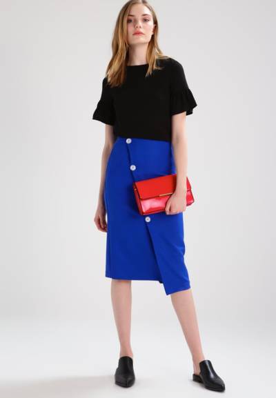 Oryginalna kobaltowa spódnica ozdobiona guzikami – Top Shop, 153,30 zł