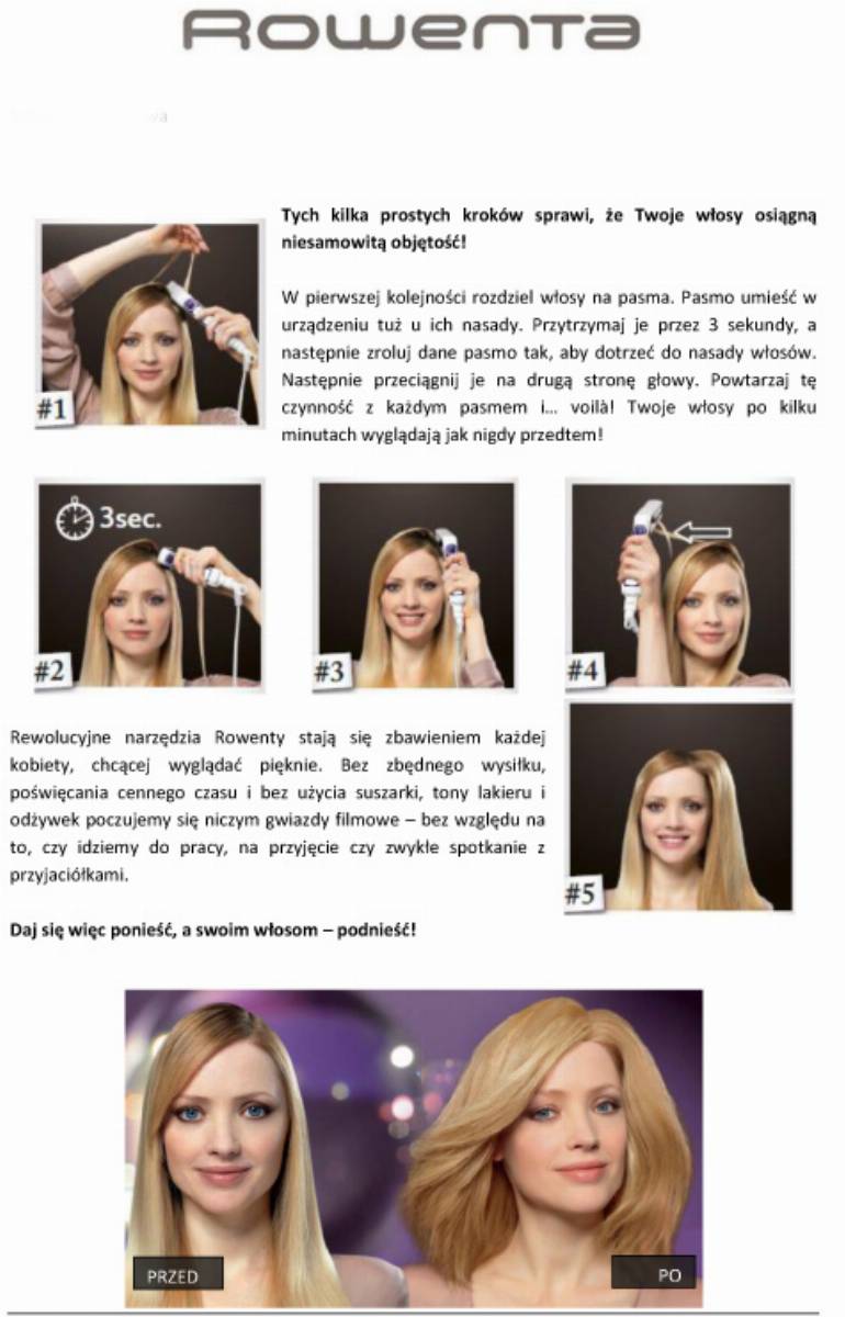 Co więcej, urządzenie zapewnia to, o czym marzy wiele kobiet – minimum czasu poświęconego na układanie włosów przy maksimum czasu trwania efektów. Idealna fryzura po użyciu produktu marki Rowenta utrzymuje się przez cały dzień. Samo użycie trwa natomiast zaledwie kilka minut i jest zaskakująco łatwe w obsłudze. Wszystko to sprawia, że po tych kilku minutach każda kobieta będzie wyglądała olśniewająco niczym po wizycie u fryzjera.