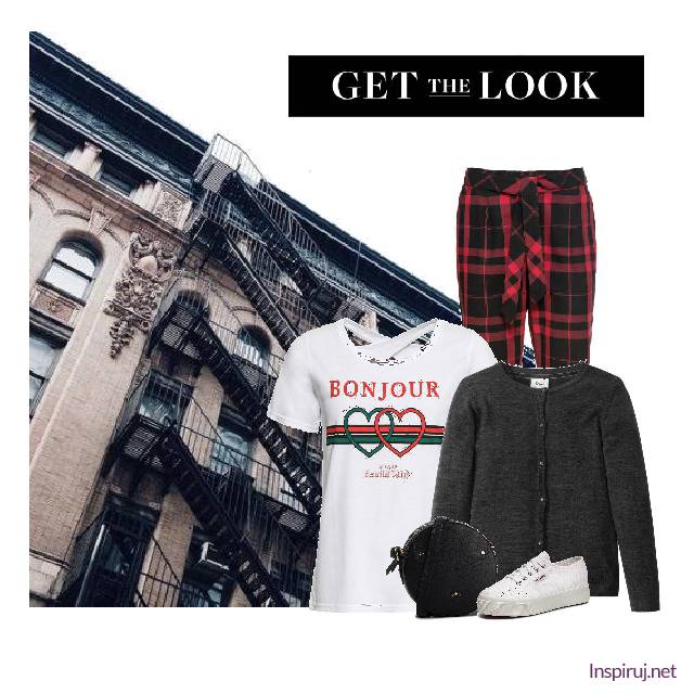 Ale Rachel Green to nie tylko pracowniczy dress code czy wyszukany, kobiecy styl – to również luźne, sportowe outfity. Druga stylizacja zabiera nas w serialowe kadry, cofając nas w czasie o dwadzieścia lat. Co nie zmienia faktu, że kompozycja sprawdzi się na co dzień. Krata i T-shirt z nadrukiem to esencja stylu Rachel Green. Do tego białe tenisówki i oryginalna torebka GABOR i można iść na spacer.