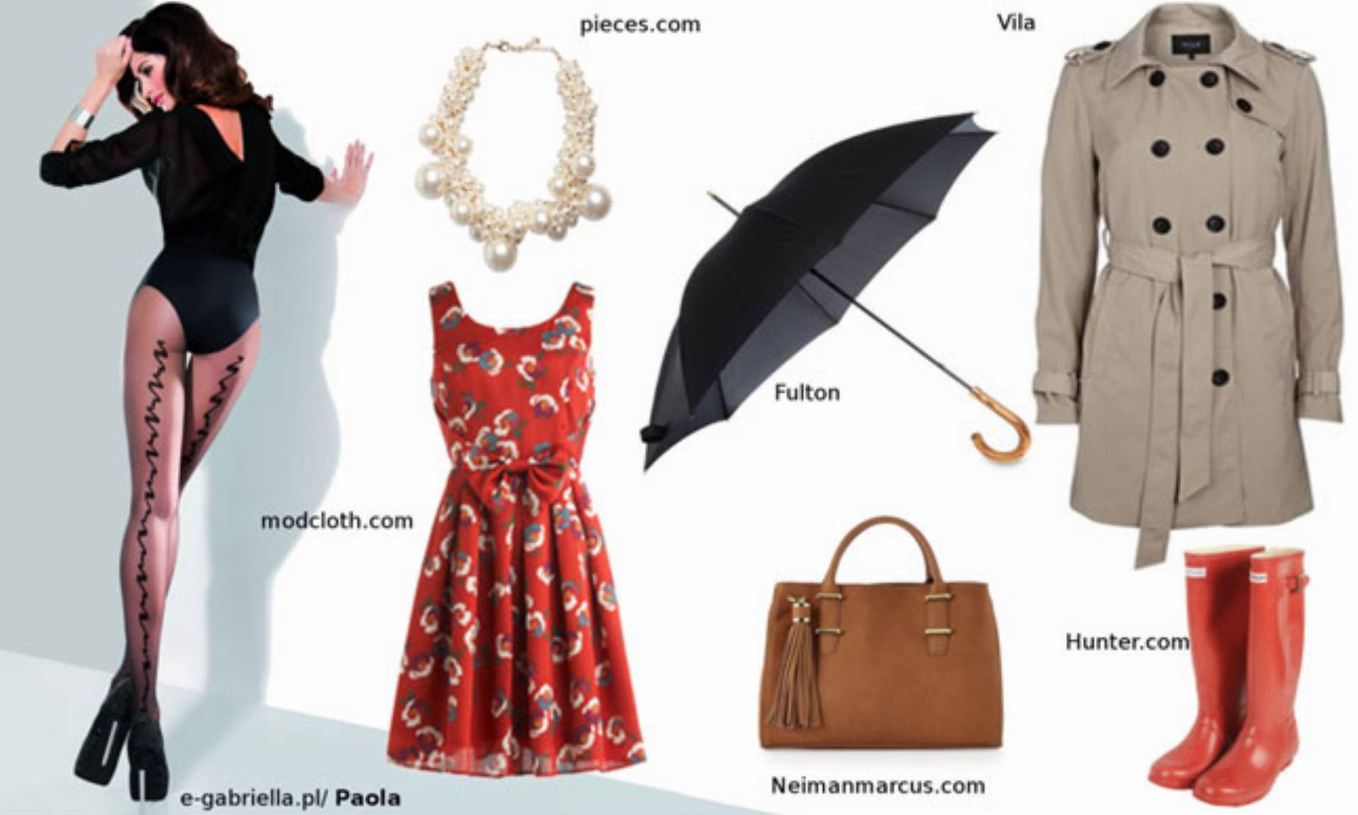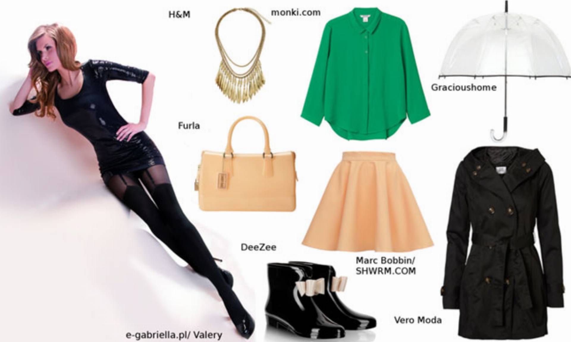 Planujecie wielkie wyjście, które nie może obejść się bez eleganckiej sukienki? Nie martwcie się, kiedy zaskoczy Was deszcz! Czarne kalosze to hit tego sezonu, który świetnie pasuje do każdej stylizacji. Jej uzupełnienim mogą być klasyczne dodatki oraz wzorzyste rajstopy Trini, które dodadzą całości charakteru.
