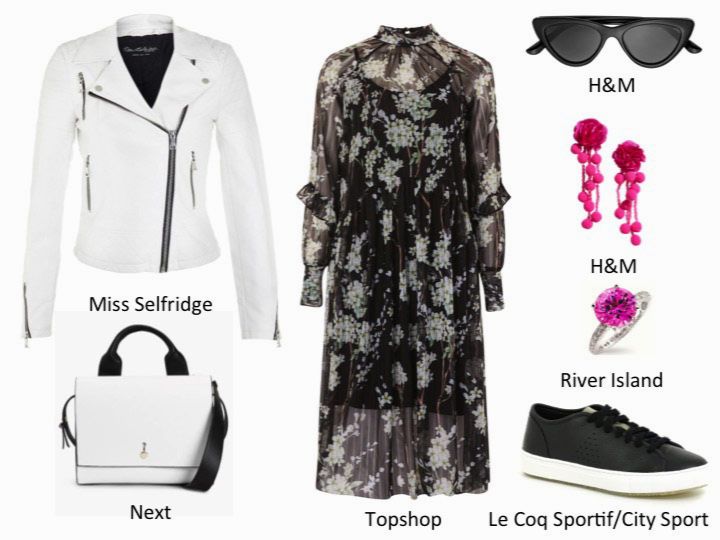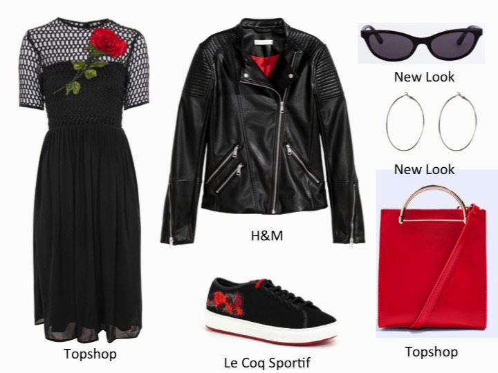 Sukienka z haftami i buty na masywnym obcasie to supermodny zestaw. Jeżeli wolisz wygodę, możesz jednak zdecydować się na trampki – doskonale pasują do rockowej stylizacji.