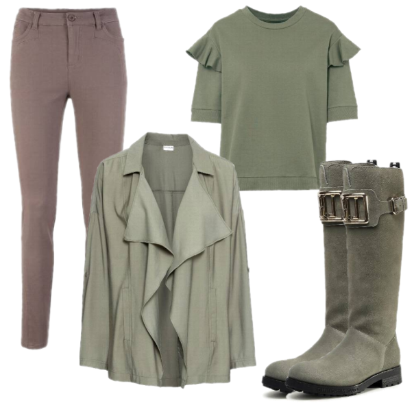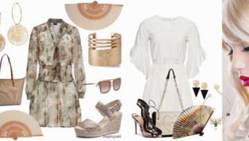 Kolejna stylizacja jest połączeniem stylu casualowego ze sportowym. Złożona z wielu elementów tworzy w efekcie spójną całość. Najbardziej ożywczą częścią outfitu jest z pewnością t-shirt w paski, wśród których nie mogło zabraknąć optymistycznego żółtego. Mamy też dżins, a także ciekawe poncho, które nieco osłoni nas przed chłodem. Na nogi ażurowe sandałki na szpilce, a do ręki – koniecznie dziewczęca parasolka z koronką!