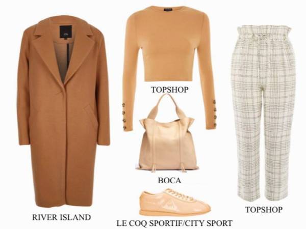 Ciepłe barwy karmelu, toffi i wielbłądziej wełny doskonale komponują się z szarością, a do gładkiej, obcisłej bluzki doskonale będą pasować spodnie w kratkę o nieco piżamowym fasonie, z wzorem.