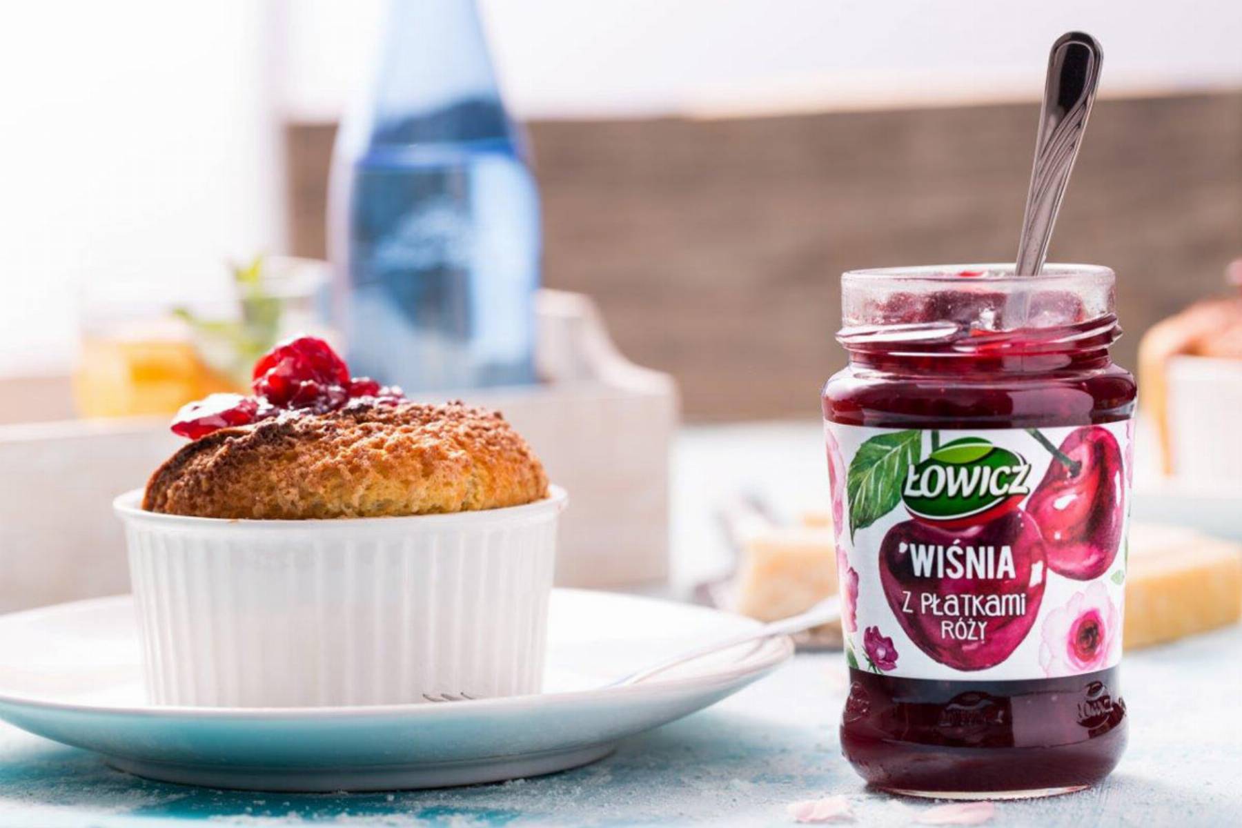 Suflet serowy z dżemem wiśniowym z płatkami róży