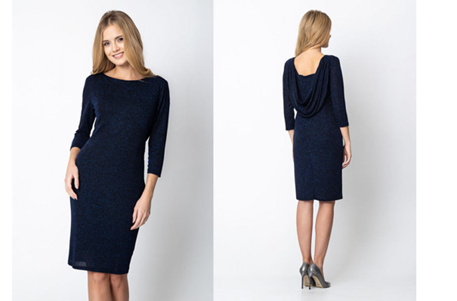Granatowa sukienka z metalizowaną nicią i ozdobnym tyłem – Quiosque, 199,99 zł