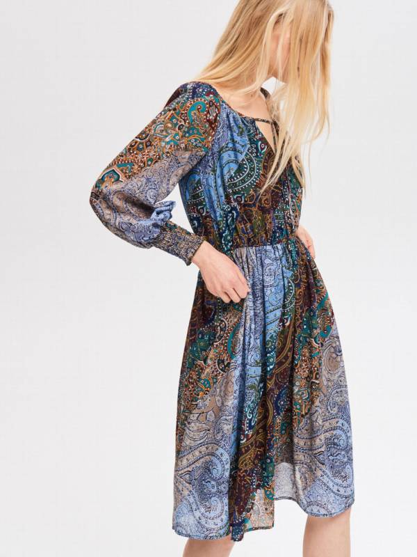 Sukienka w błękitach i zieleni z bufkami na rękawach – Reserved, 119,99 zł