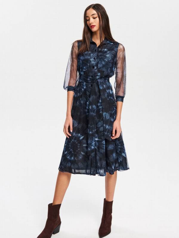 Granatowa sukienka tie-dye z transparentnymi rękawami – Reserved, 199,99 zł