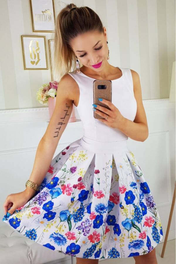 Rozkloszowana biała sukienka w kwiaty – Jesteś modna, 159 zł