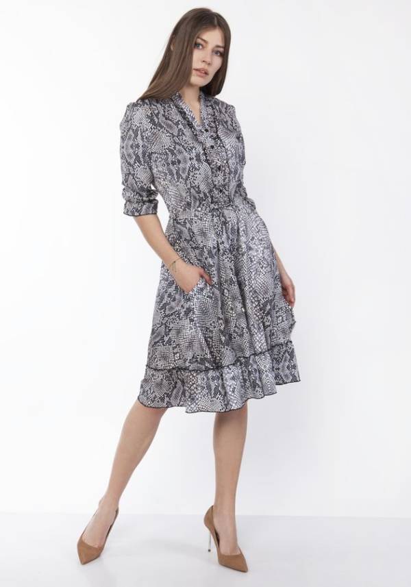 Sukienka z falbanką w wężowy wzór – Lanti, 189 zł
