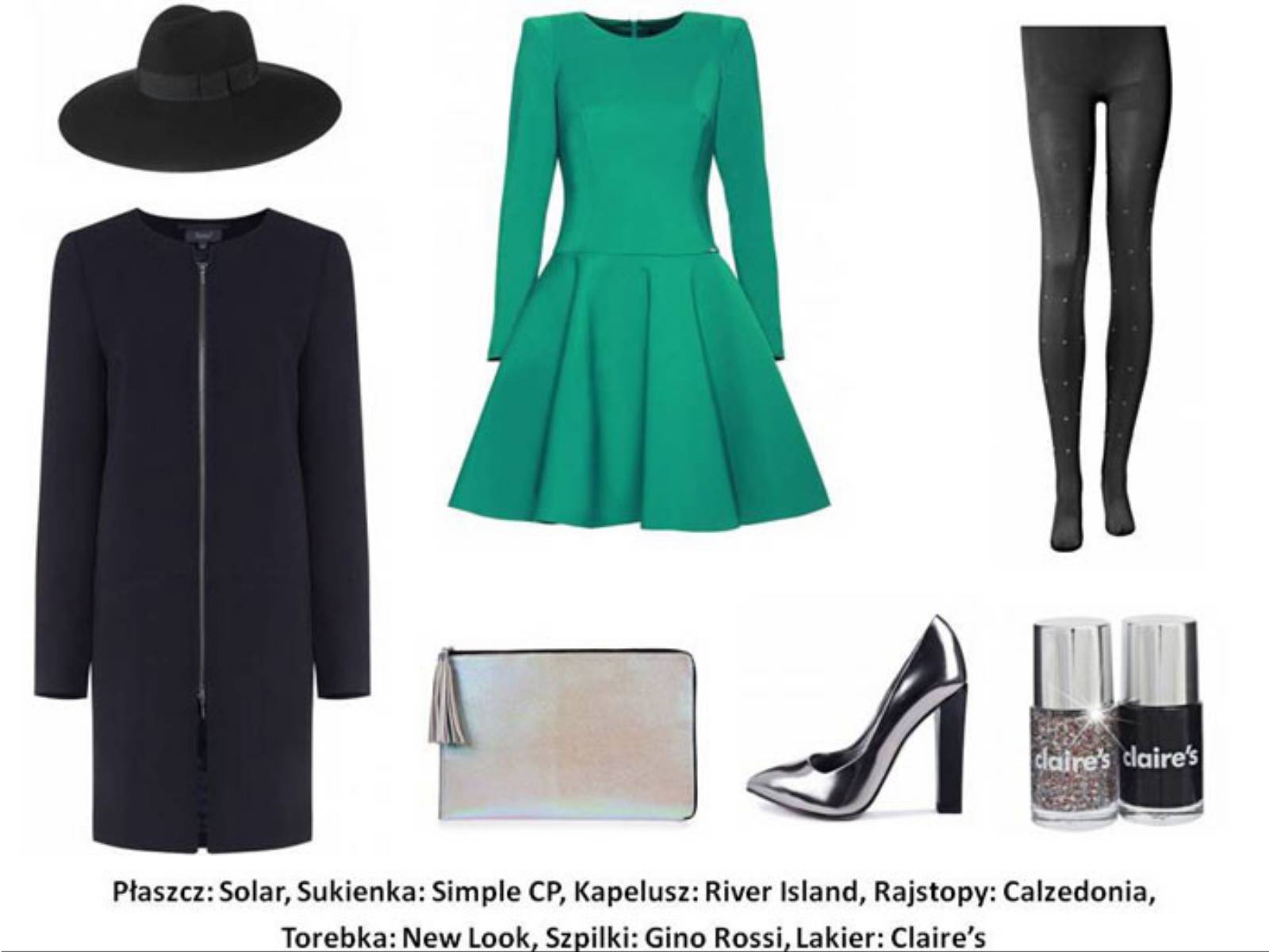 Klasyczna i jednocześnie nowoczesna propozycja dla kobiet, które lubią czuć się elegancko. Zainwestuj w szmaragdy – przynajmniej na ubraniach. Jest to wyjątkowo głęboki i wyrafinowany kolor. Najlepszym okryciem do rozkloszowanej sukienki jest prosty, czarny płaszcz, który nabierze nonszalanckiego charakteru w połączeniu z ponadczasowym klasycznym kapeluszem.