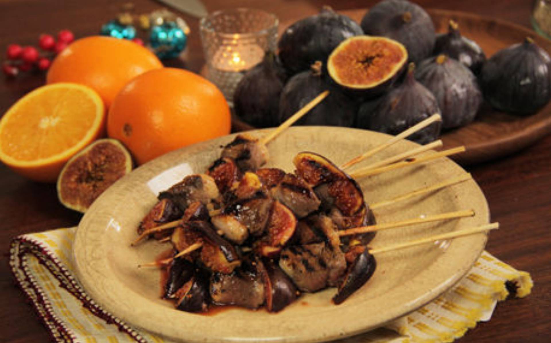 1. Umieść na każdym szpikulcu po 3 kawałki kaczki i figi, na zmianę.