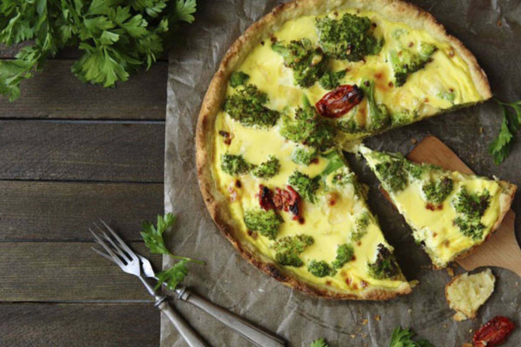 Składniki ciasta posiekaj ze sobą nożem, po czym bardzo szybko zagnieć palcami na jednolitą elastyczną masę. Wstaw do lodówki na 1h. Po upływie czasu ciasto rozwałkuj i wyłóż nim natartą masłem formę do tart. Zrób widelcem w cieście dziurki i wstaw do nagrzanego piekarnika: 180 stopni około 15 min, aż się przyrumieni. Przestudź spód. Pomidory drobno posiekaj i wrzuć do miski, dodaj małe różyczki brokułu, kapary, posiekaną bazylię i szalotkę oraz pozostałe składniki. Wymieszaj dokładnie i zalej spód. Piecz w 180 stopniach, aż jajka się zetną. Możesz na początku przykryć folią, aby różyczki się nie przypaliły.