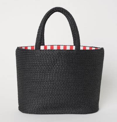Czarna torba-koszyk z biało-czerwonymi pasami w środku – H&M, 79,90 zł