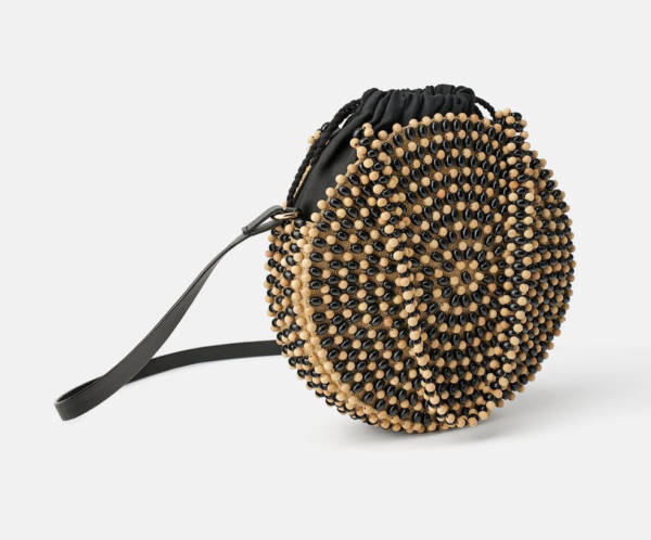 Okrągła listonoszka z drewnianymi koralami – Zara, 79,90 zł
