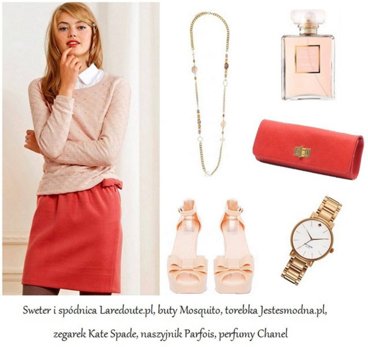 Róż w połączeniu z czerwienią! Ten zestaw doskonale sprawdzi się podczas wigilijnej kolacji w rodzinnym gronie. Różowy sweterek ze sklepu Laredoute.pl stworzy zgrany duet z klasyczną białą koszulą, a spódnica przykuje wzrok dzięki uroczej kokardce. Ten iście dziewczęcy look genialnie dopełnią gumowe meliski na koturnie, a także subtelne dodatki w postaci złotego zegarka, delikatnego naszyjnika czy podłużnej kopertówki, która pomieści rozmaite kobiece drobiazgi takie jak błyszczyk czy flakonik ulubionych perfum. Jak Wam się podoba?