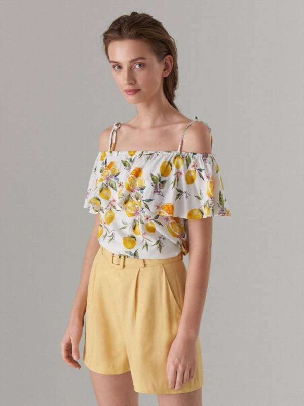 Ubrania w cytryny są doskonałym wyborem na ciepłe, letnie dni, kiedy w powietrzu unosi się zapach rozgrzanej słońcem roślinności, a nasze myśli krążą gdzieś daleko. Pasują do klapków, sandałek, ciemnych okularów i zabawnej biżuterii z koralików, nawiązującej do naszych młodych lat. Słodkie i dziewczęce, równie świetnie prezentują się zarówno w połączeniu z elegancką czernią czy dekadenckimi szarościami, jak i w wersji total look. Co więcej, mogą posłużyć za podstawę bardzo zróżnicowanych stylizacji – od tych artystycznych i futurystycznych aż po vintage. Jeśli więc jeszcze nie macie w swojej szafie niczego z tym wzorem, nasz przewodnik zakupowy pozwoli Wam na bliższe przyjrzenie się bieżącej ofercie! Zapraszamy!