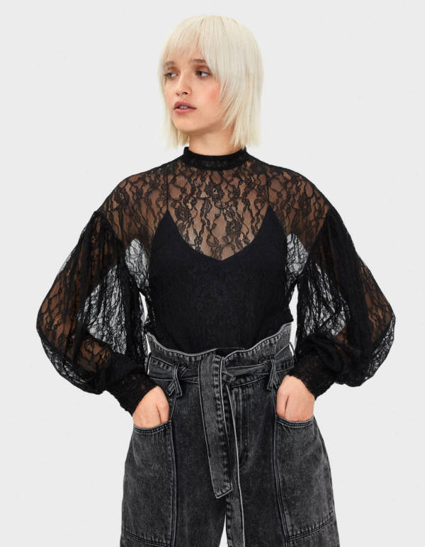 Koronkowa bluzka z bufkami – Bershka, 99,90 zł