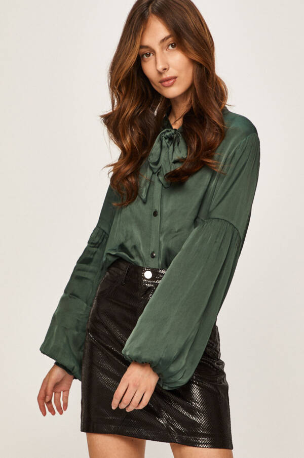 Ciemnozielona koszula z kokardą i bufkami – Answear, 89,90 zł