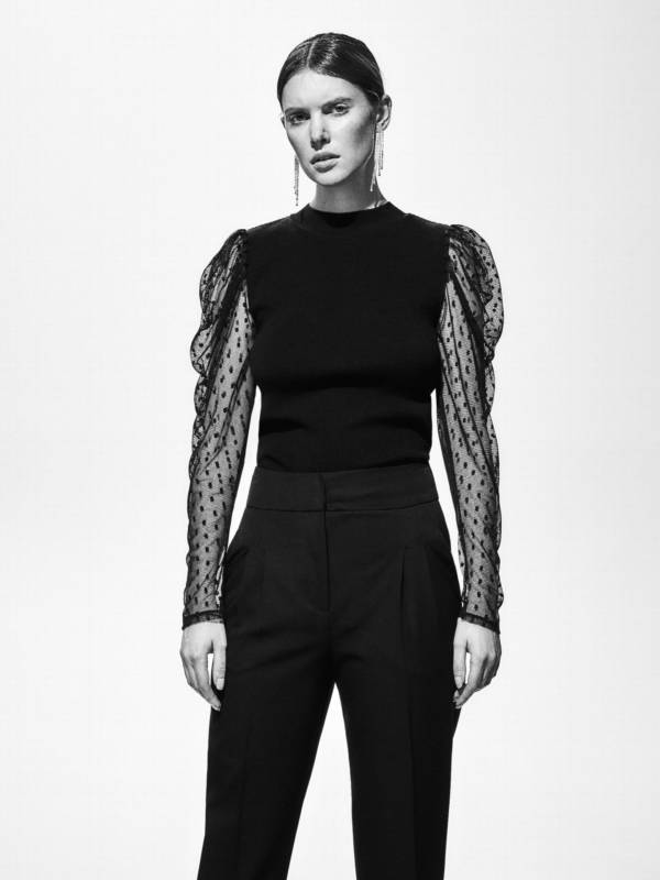 Przeglądając ofertę sklepów, łatwo zauważyć, że ubrania z bufiastymi rękawami w większości są utrzymane w czerni i bieli, ewentualnie w ciemnej zieleni lub szarościach. Często powtarzają się na nich dodatkowe ozdobne elementy, takie jak kokardki, wiązania, koronki, plumeti, duże guziki, wycięcia i nadruki. Dopasowane do figury i reszty stylizacji potrafią dzięki temu zbudować zestaw w stylu Belle Epoque, który idealnie sprawdziłby się w paryskich salonach. Obowiązkowo z efektowną, masywną biżuterią w postaci okazałych wiszących kolczyków, sznurem pereł lub pamiątkową broszką. A wszystko to niewielkim wysiłkiem i nieszczególnie dużym kosztem. Zobaczcie, jakie modele wybraliśmy dla Was z myślą o pracy, imprezach i uroczystych rodzinnych okazjach!
