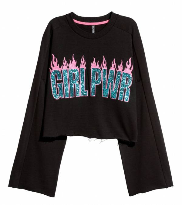 Krótka bluza z szerokimi rękawami i płonącym napisem „Girl Power” – H&M, 32,90 zł