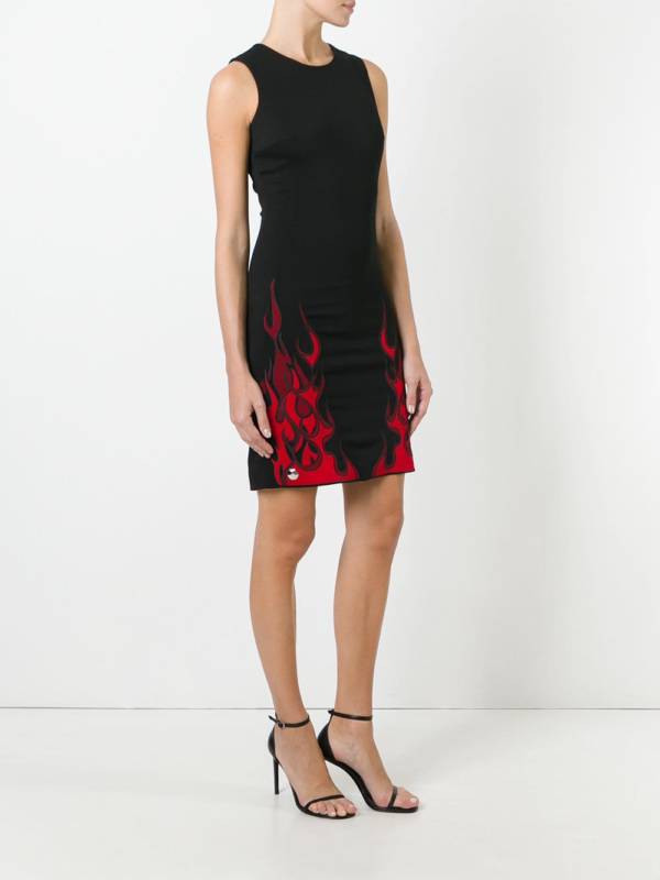 Czarna sukienka z czerwonymi płomieniami – Philipp Plein, $ 1339