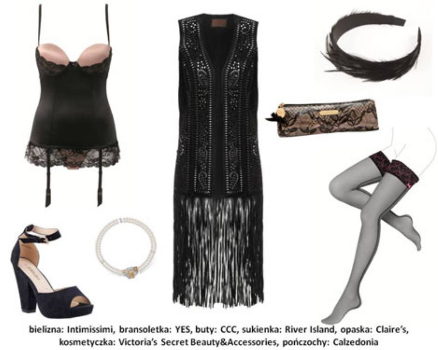 Istotnym elementem stroju vintage jest bielizna. Bielizna nocna jest uszyta ze szlachetnego jedwabiu i ozdobiona koronkami, natomiast bielizna dzienna powinna nawiązywać do kobiecej klasyki, czyli gorsetów. Wieczorowa kreacja nie może się obyć bez biżuterii, a patrząc na bohaterki filmu należy kierować się zasadą „im więcej, tym lepiej”. Perły to szykowny i niezbędny element stylizacji. Pojawiąją się wszędzie – na szyi, nadgarstkach i jako kolczyki, ale również ozdoba torebek i butów. Numerem dwa są pióra, zdobiące włosy i oryginalne sukienki. Buty w stylu lat 20. mają niewysoki obcas i są zawiązywane na kostce, a przyciągają wzrok lakierowaną skórą i zdobieniami w postaci koralików czy brokatu. Natomiast torebki to małe dzieła sztuki – wyszywane biżuteryjnymi dodatkami puzderka na łańcuszku będą uroczym dodatkiem każdej imprezowej stylizacji.
