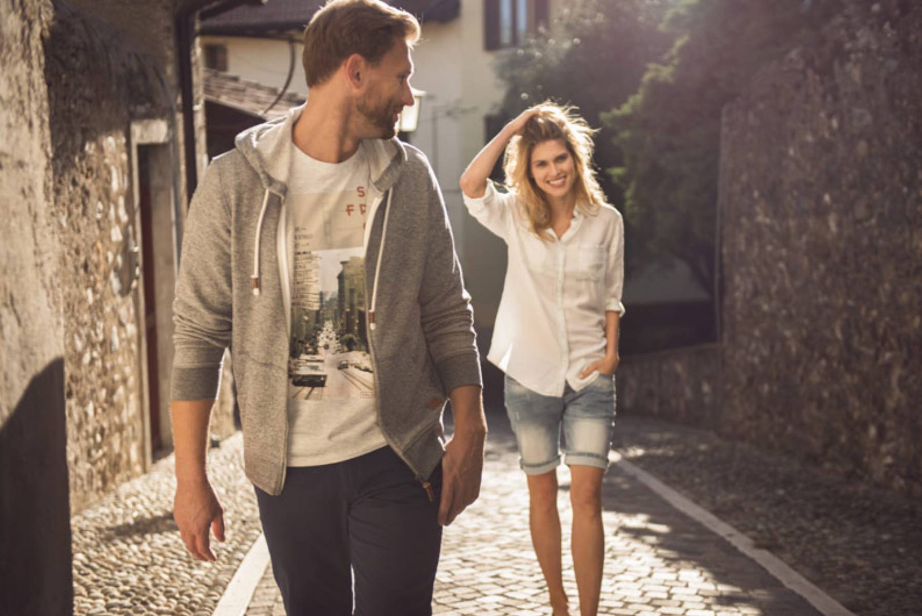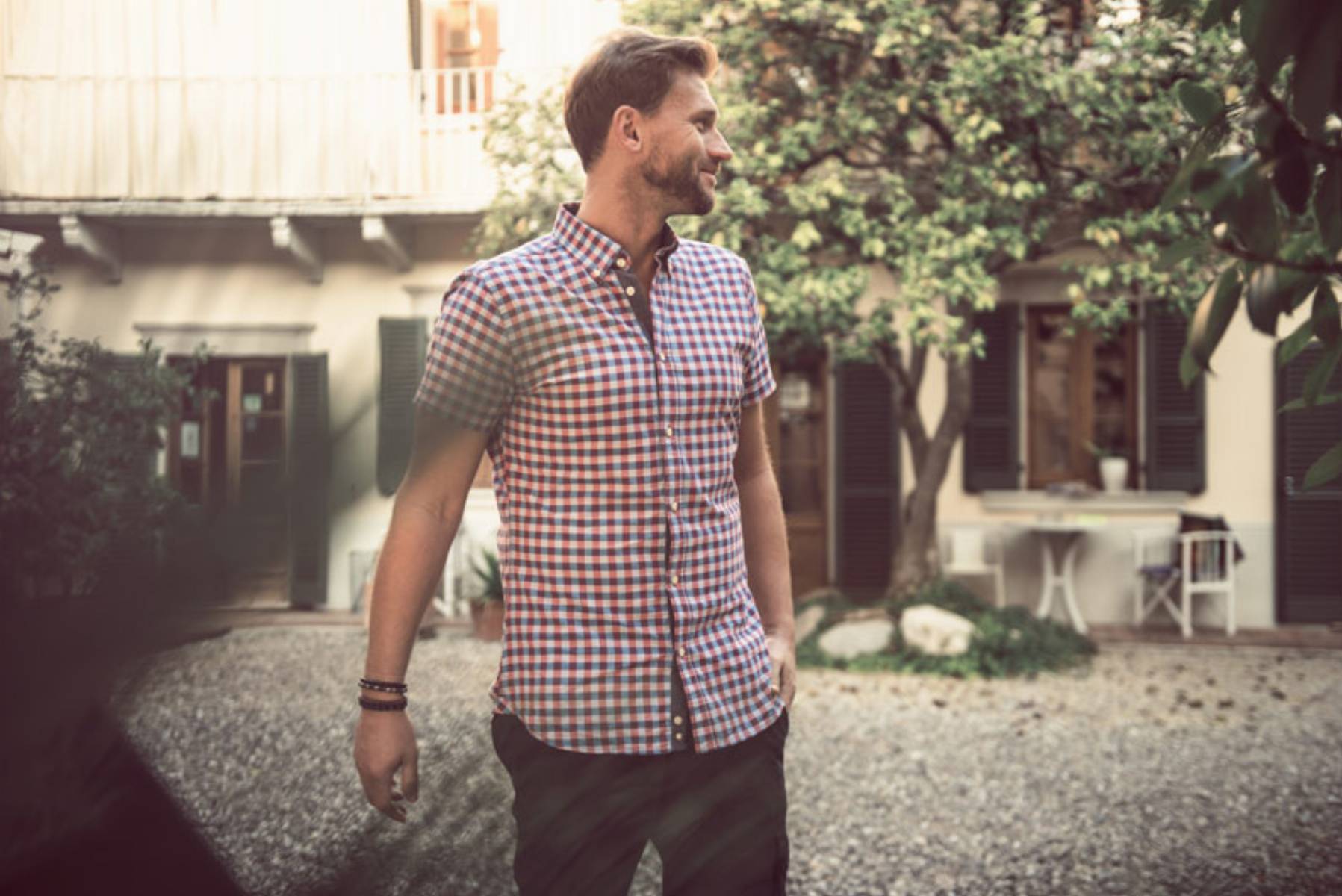 Propozycje dla mężczyzn to odważne połączenia kolorów, nadruki w wakacyjnym stylu (z napisami i zdjęciami urokliwych miejsc), wyraźne melanże oraz ponadczasowy denim. Krata na koszulach w stonowanych kolorach to absolutny must have, połączenie jej z klasycznymi lub melanżowymi dresowymi szortami nadaje stylizacji zupełnie nowego charakteru.