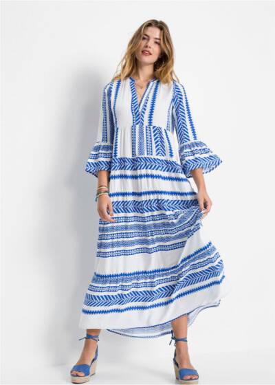 Oto przepis na elegancki look! Biała sukienka maxi świetnie będzie wyglądać w zestawieniu z wiązanymi espadrylami czy pojemnym, słomkowym shopperem. Nie zapomnijcie o dodatkach – dopełnieniem stylizacji będą kolczyki, daszek przeciwsłoneczny lub wzorzysta apaszka przewiązana we włosach.