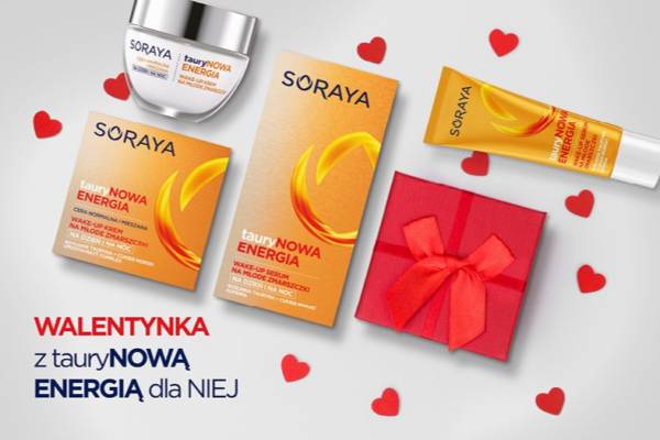 TauryNOWA ENERGIA to linia kosmetyków z silnie energetyzującą roślinną tauryną. Dodaje blasku szarej, zmęczonej cerze, skutecznie zwalcza pierwsze oznaki starzenia, nawilża i zapewnia jej wypoczęty wygląd. A o tym marzy przecież każda kobieta. Panowie również, ale wstydzą się to przyznać. Zarówno propozycje dla kobiet, jak i kosmetyki Soraya dla mężczyzn kupisz praktycznie w każdej drogerii. Skomponuj zestaw, który twoim zdaniem będzie najbardziej trafiony. Nie będzie to trudne, bo kosmetyki adresowane są do konkretnego wieku. Poniżej przedstawiamy przykładowe warianty.