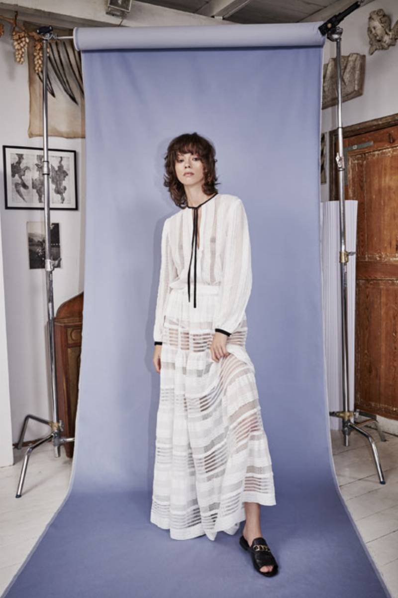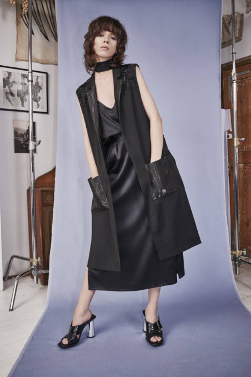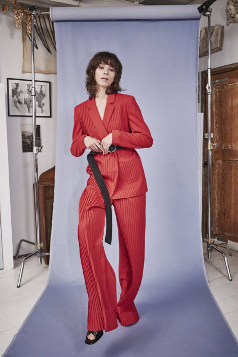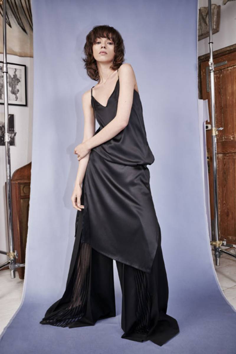 Buduarowe sukienki z jedwabiu, czy w wersji rozbielonego różu czy też smoliście czarne można nosić solo lub też zestawiać je z bardziej zabudowanymi modelami. Jeśli w kolekcji pojawiają się plisy to nie w postaci klasycznych solejek, tylko pod postacią wytwornych garniturów w bieli i czerwieni. Zabudowane sukienki z koronek okazują się być prowokująco uwodzicielskie z ich graficznymi przezroczystościami.