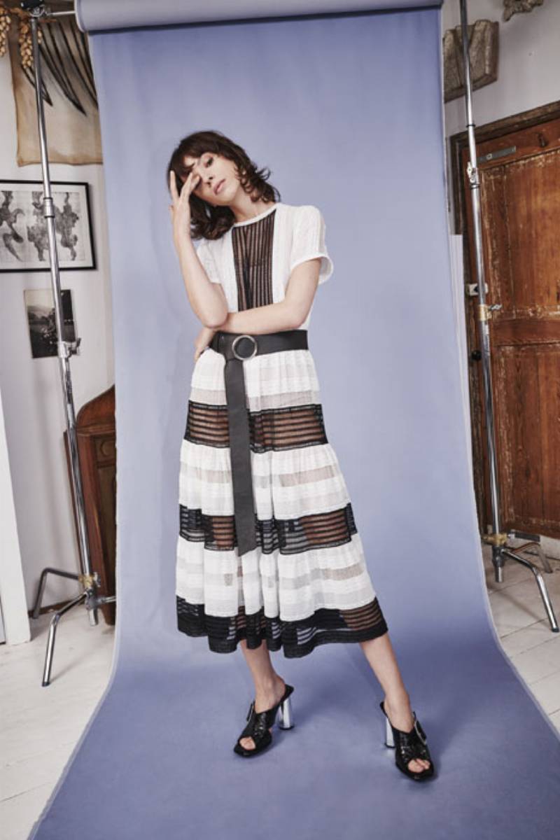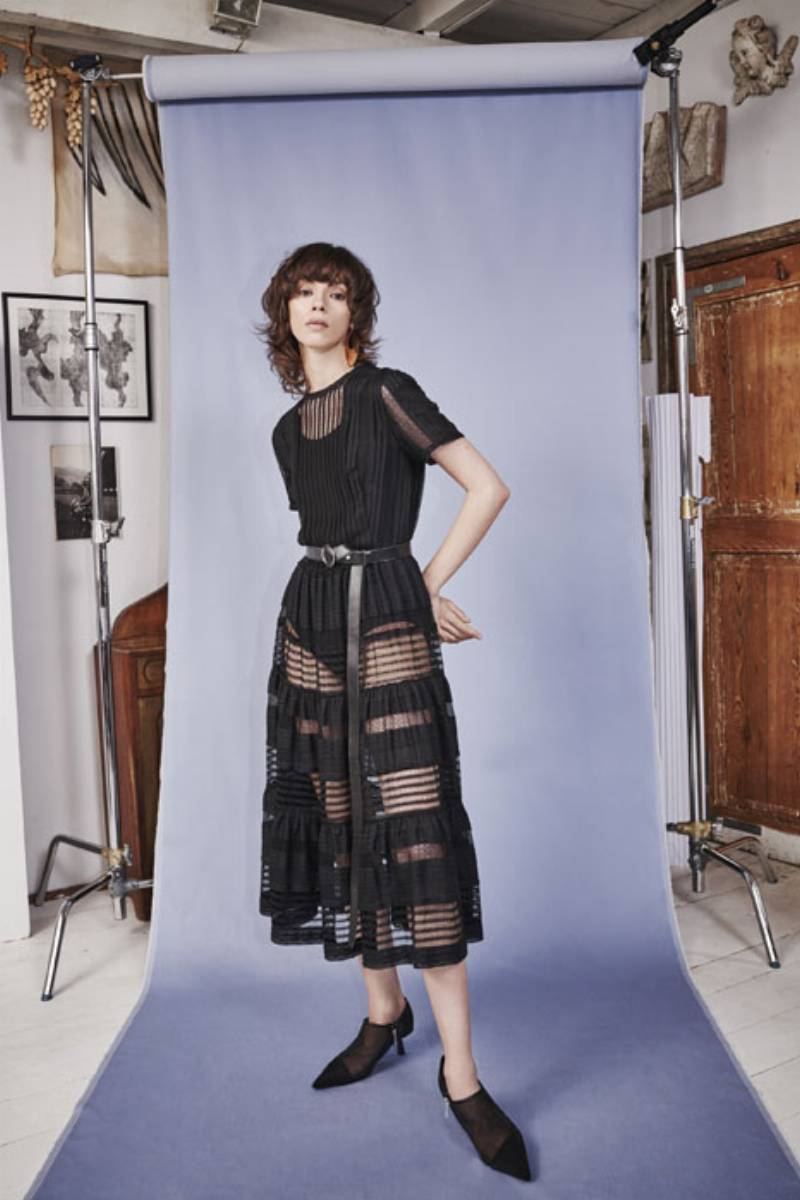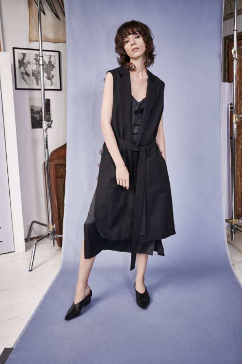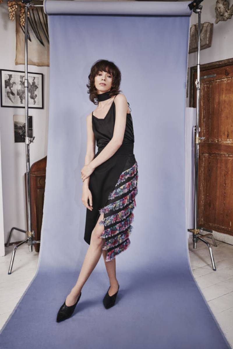 Buduarowe sukienki z jedwabiu, czy w wersji rozbielonego różu czy też smoliście czarne można nosić solo lub też zestawiać je z bardziej zabudowanymi modelami. Jeśli w kolekcji pojawiają się plisy to nie w postaci klasycznych solejek, tylko pod postacią wytwornych garniturów w bieli i czerwieni. Zabudowane sukienki z koronek okazują się być prowokująco uwodzicielskie z ich graficznymi przezroczystościami.