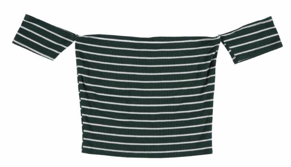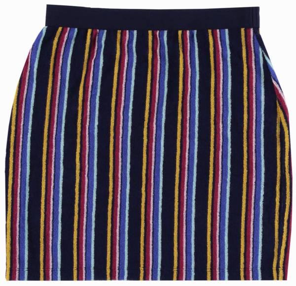 Obok podłużnych pasów pojawiły się także poprzeczne. Ten wdzięczny wzór jest doskonałym uzupełnieniem stylizacji utrzymanej w marynarskim stylu.