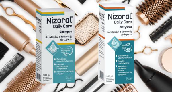 - Zadbaj o właściwą pielęgnację dobranymi preparatami. Pomocna okaże się dostępna w aptekach linia kosmetyków Nizoral Daily Care.