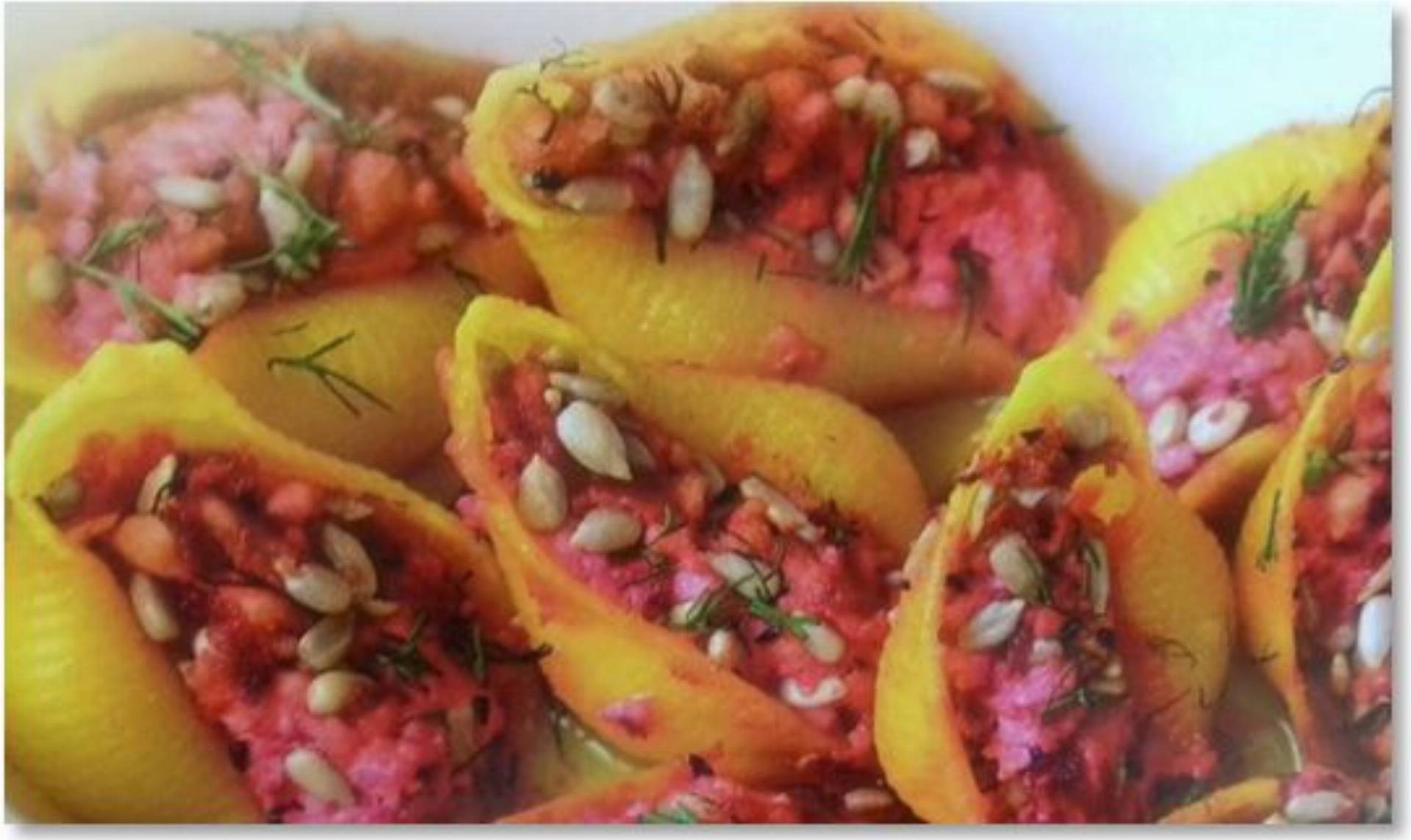 Zapiekane makaronowe muszle z twarożkiem i buraczkiem