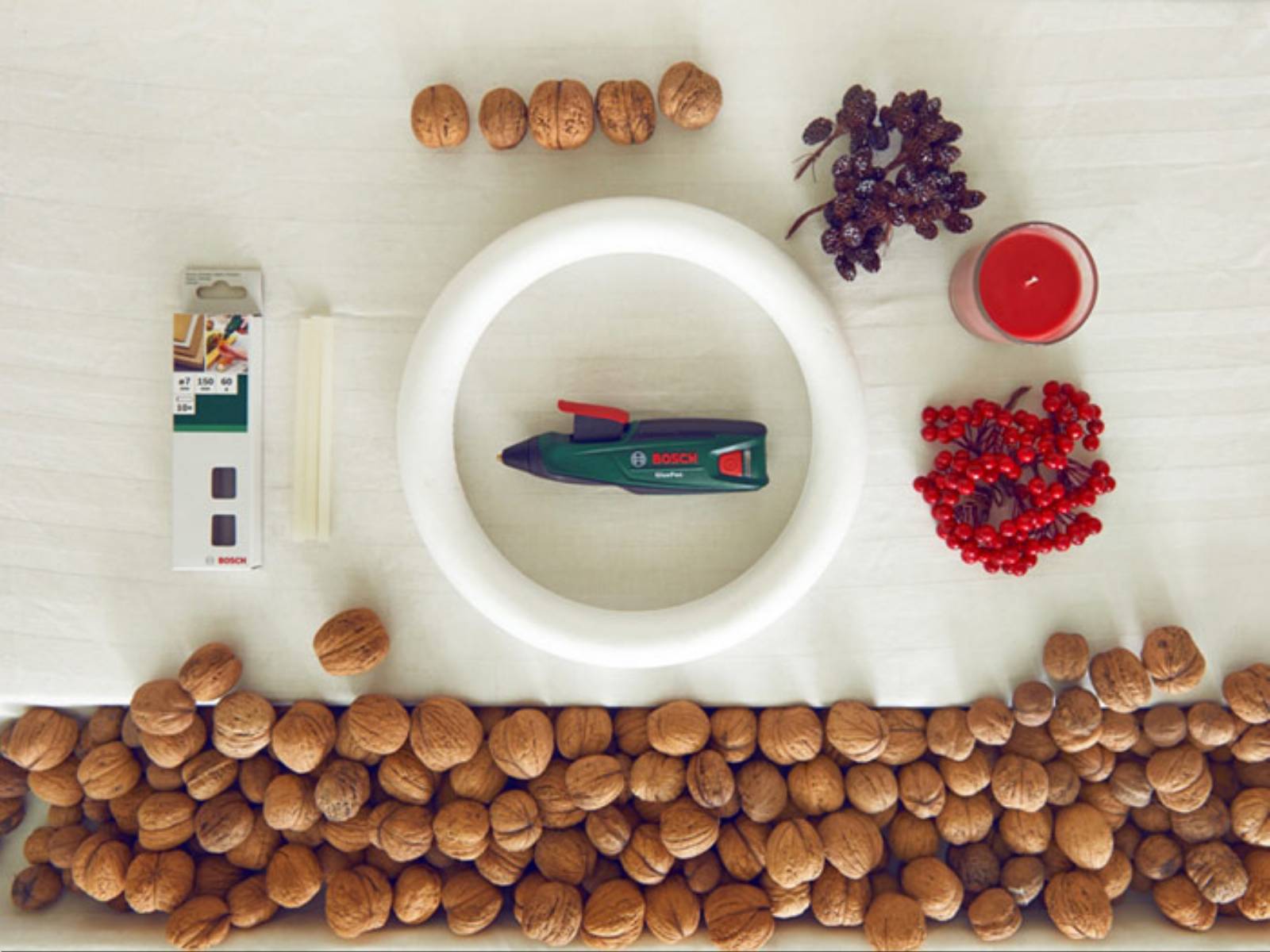 Do stworzenia wianka z orzechów włoskich potrzebujesz: